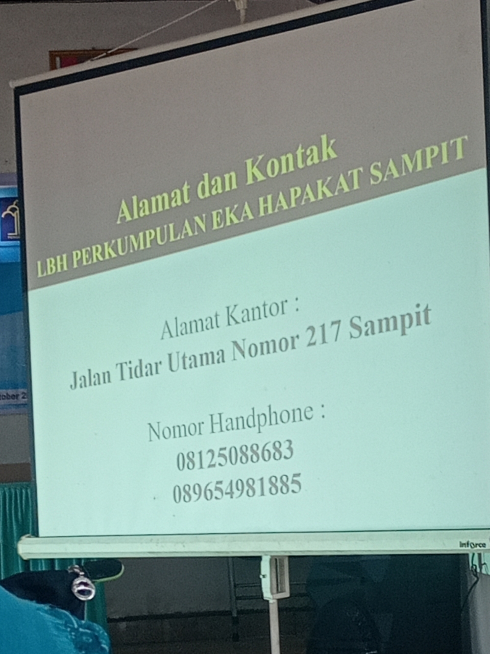 Kegiatan ini merupakan kolaborasi apik dengan LBH Perkumpulan Eka Hapakat, sebuah lembaga yang berdedikasi tinggi dalam memberikan bantuan hukum. Dua narasumber kompeten hadir untuk memberikan pencerahan: Bapak Bambang, S.H. dan Bapak Mubasyuruddin, S.H.